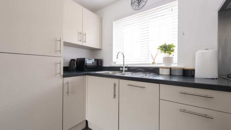 This stylish 2-bedroom home offers a bright living area, a fully equipped kitchen, and a king-size bed with a premium mattress and luxury linens for a truly restful night’s sleep.