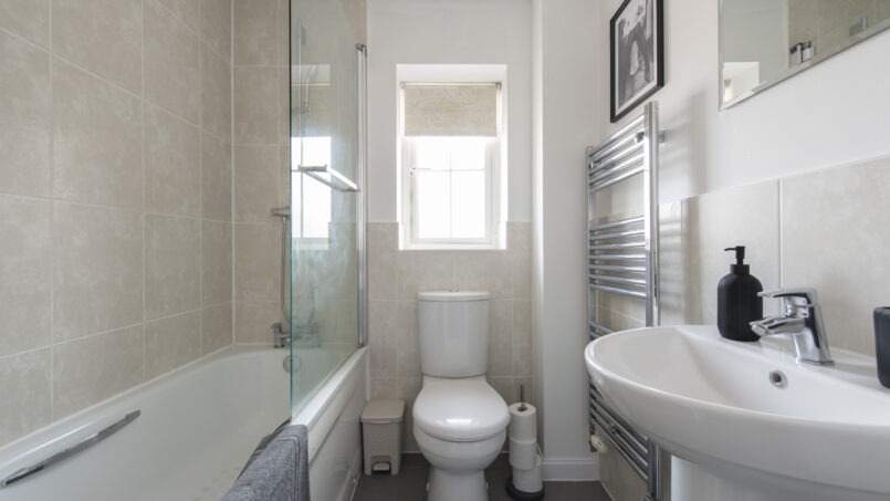 Contemporary fittings, high-pressure shower 🚿, and hotel-quality towels & toiletries 🧴.